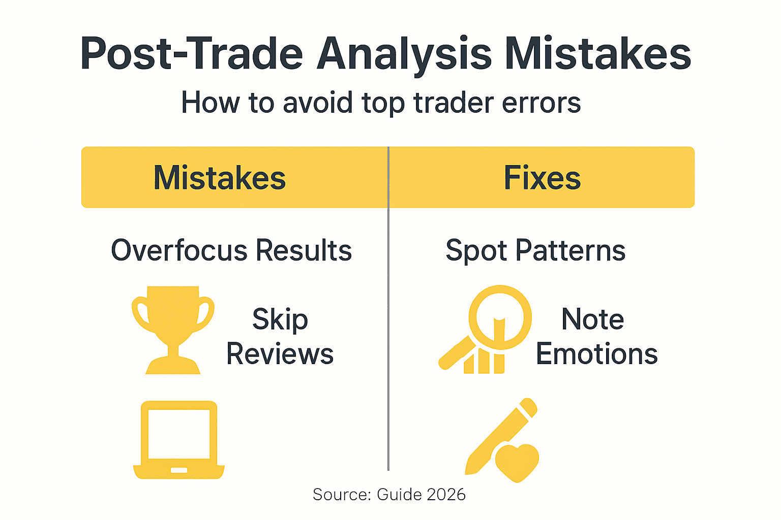 Traders make predictable errors during post-trade analysis that limit improvement. Understanding these mistakes and their fixes accelerates your development.
